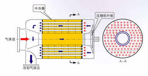 在通常的氣(汽)-液管殼式換熱器中,液體走管程、氣體走殼程,為改善氣側(cè)的換熱,在管外采用加翅片管的方式以增加換熱面積。這種換熱器的不足之處在于,盡管加大了氣側(cè)的換熱面積,但氣體流速仍然處于較低的水平,因而總的傳熱系數(shù)很低,從而導(dǎo)致?lián)Q熱能力仍然不高。內(nèi)翅片管換熱器是一種新型高效換熱器,其基本特點(diǎn)是將傳統(tǒng)換熱器中兩種介質(zhì)(氣(汽)、液)的流程對(duì)調(diào),即讓氣體走管內(nèi)(翅片管),水走管外(光管)。這種換熱器已被證實(shí)具有較高的傳熱效率,可以有效減小壓縮機(jī)中冷器設(shè)備的體積,但目前國外公司幾乎占有了這類產(chǎn)品的全部市場(chǎng)。由于技術(shù)保密方面的原因,有關(guān)的技術(shù)參數(shù)及經(jīng)驗(yàn)關(guān)聯(lián)式幾乎沒有。